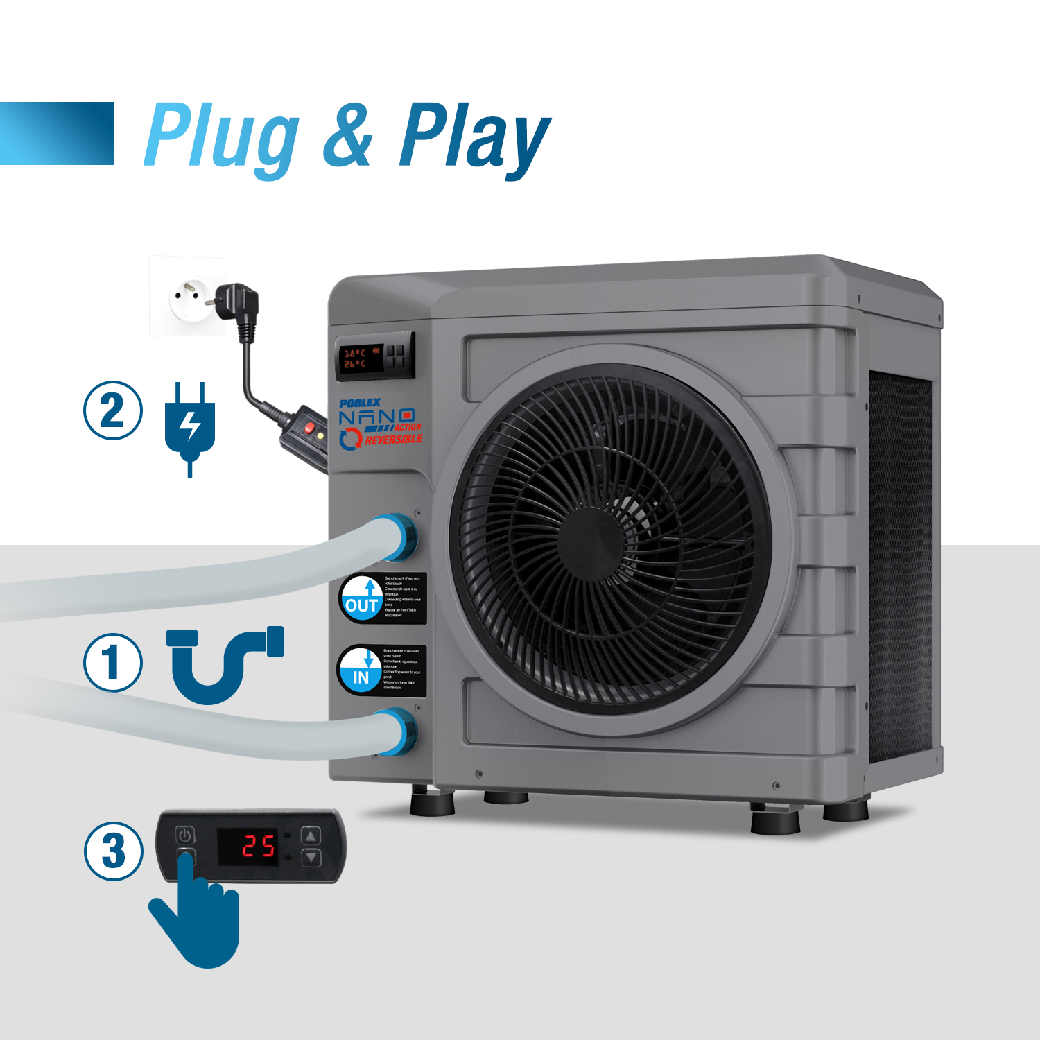 Her zamankinden daha verimli olan Nano Turbo, tersine çevrilebilir modu sayesinde rakiplerini geride bırakıyor. Küçük hacimli sular sıcak dönemlerde kolayca aşırı ısınabilir. Serinleyebilmek gerçek bir rahatlık faktörüdür , ancak aynı zamanda bu daha sıcak ortamda yosunların çoğalmasını önlemeye de yardımcı olur!